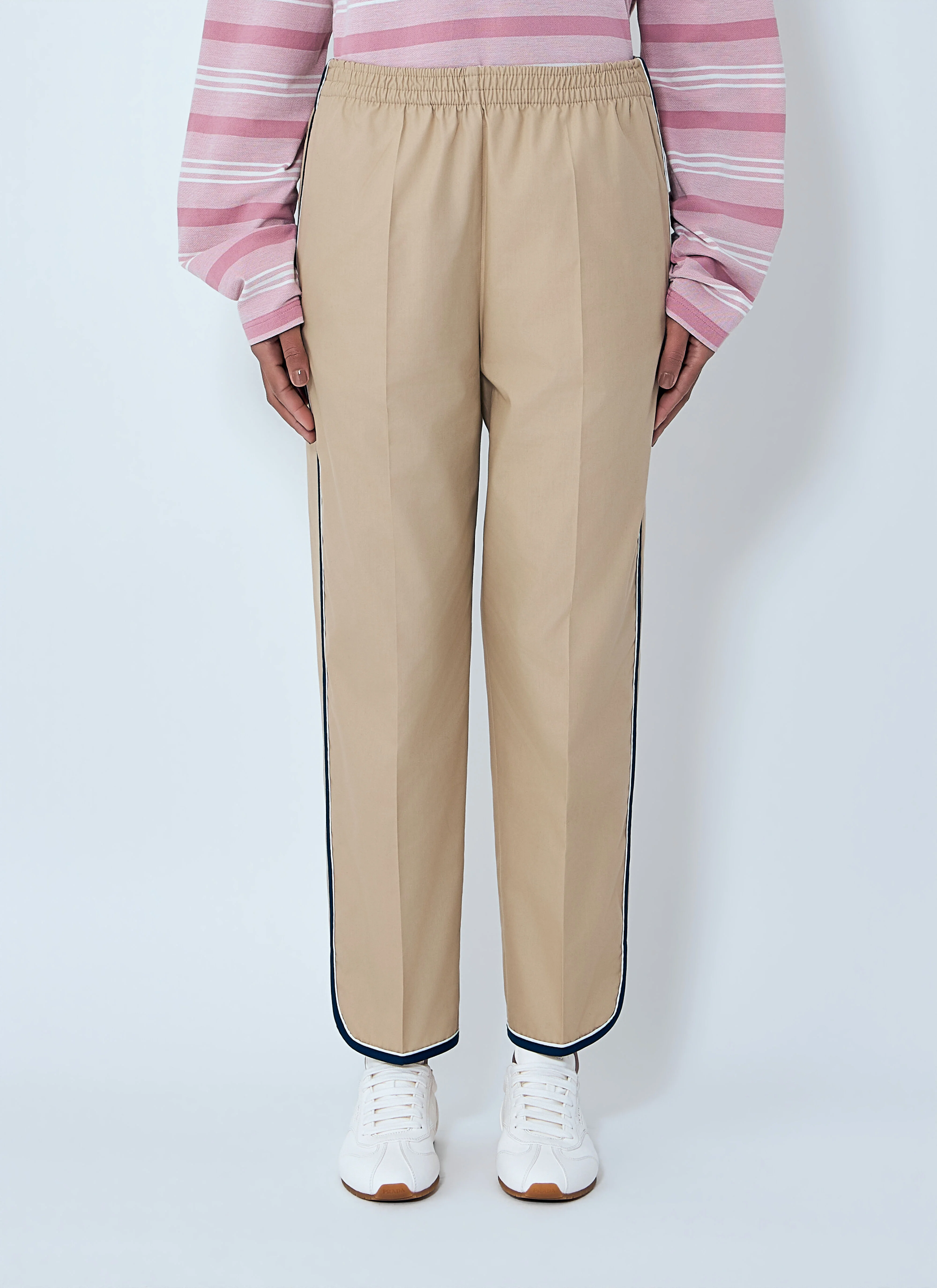 Mid rise trousers with elasticated waistband and contrast piping. - Mid rise - Elasticated waistband - Contrast piping - Straight leg - 35% Cotton 65% Polyester - Color: Beige - Code: P205KL 17KY F0F24