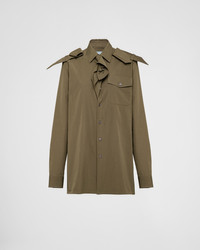 The hybrid silhouette of this poplin shirt is based on different contrasts and references to the world of uniforms. Subverting shapes and meanings, an ordinary garment is transformed into a dimensional and sophisticated design that rewrites conventional aesthetic codes. The simple lines of the menswear silhouette are brought to life with sophisticated details such as the tie with three-dimensional floral embellishment. - 商品品番: P479GR_127V_F0334_S_232 - Menswear fit - Classic shirt collar - Front button closure - Sleeves with shirt cuff - Flapped patch pockets on the front - Tie with floral embellishment and epaulette detail - The model is 180 cm tall and wears a size 38 - 高さ: 80cm