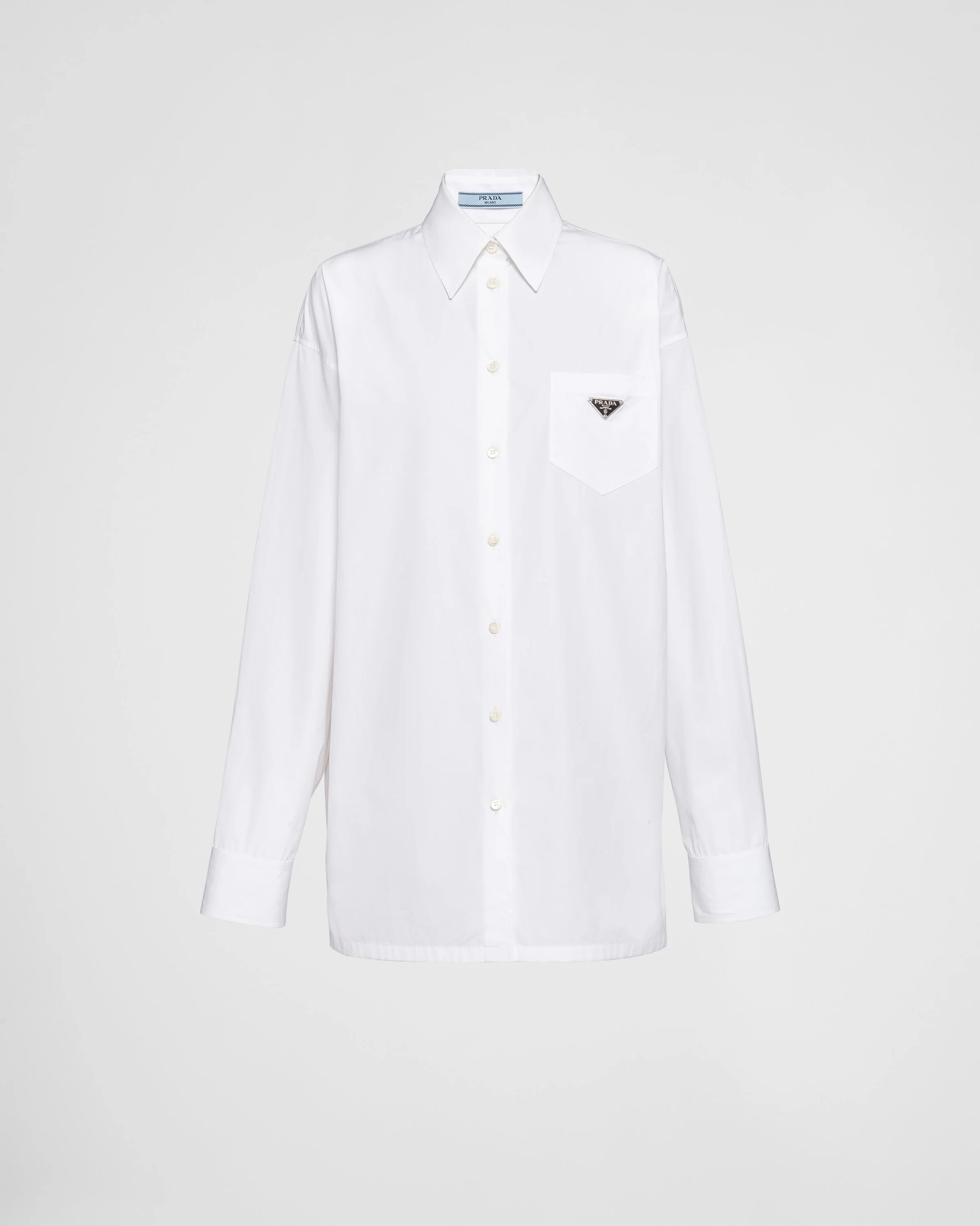 The classic men's shirt is reinterpreted in a modern, feminine way on this style made of poplin. The design is embellished with sleek details and decorated with the enameled metal triangle logo. - Product code: P418GG_1XV2_F0009_S_231 - Straight fit - Shirt collar - Front button closure - Sleeves with shirt cuffs - Front patch pocket - Enameled metal triangle logo - Straight hem - Imported Height: 75cm MATERIALS Main material: 100% cotton