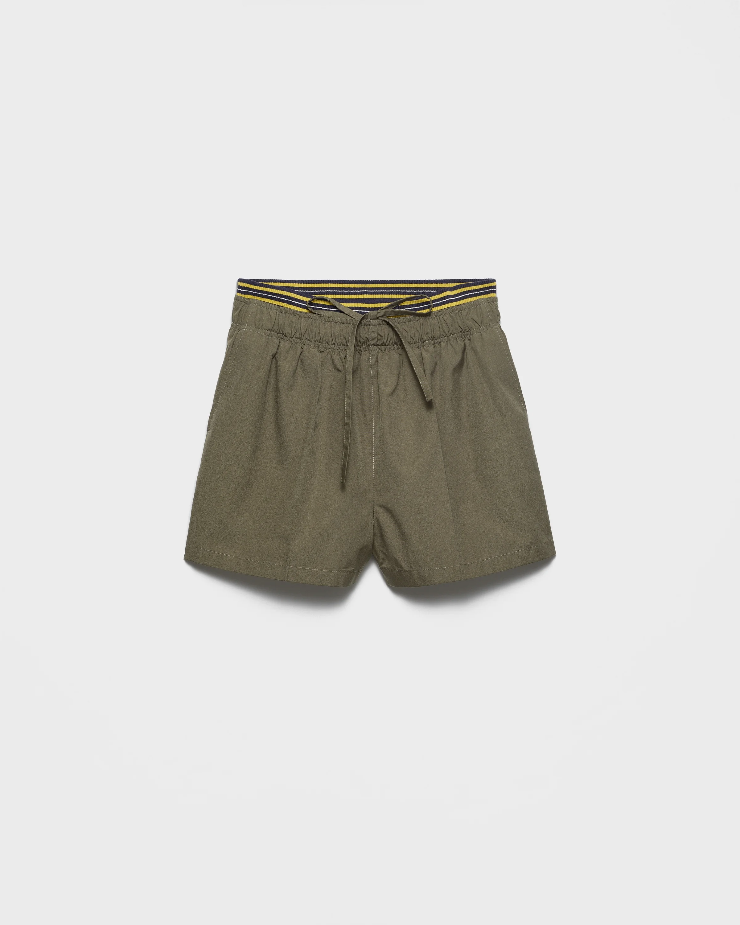These poplin shorts embody a contemporary style and relaxed attitude. The lightweight silhouette is defined by sporty details like the drawstring waist and contrasting band that makes the style unique with layering. - Product code: P202KC_19TO_F0161_S_OOO - Menswear fit - Unlined garment - Velcro triangle with tag - Angled slash front pockets - Back patch pockets - Drawstring waistband - Two-tone ribbed knit detail - Imported - The model is 178 cm tall and wears a size 38 Height: 40cm MATERIALS Main material: 35% Cotton, 65% Polyester
