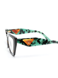 PR 09YV square-frame glasses A brand's signature style, the PR 09YV glasses from Prada Eyewear are back for the new season with a brown and green design with a tortoiseshell effect. This model is crafted from acetate and is decorated with the brand's triangle logo on the sides. Highlights - Green/brown - Acetate - Triangle logo - Tortoiseshell effect - Rectangle frame - Clear lenses - Straight arms - These glasses come with a protective case. Composition Acetate 100% SIZE & FIT Measurement Arm Length 5.51 in(14 cm) Bridge Width 0.7 in(1.8 cm) Lens Diameter 2.12 in(5.4 cm) Total Width 5.51 in(14 cm)