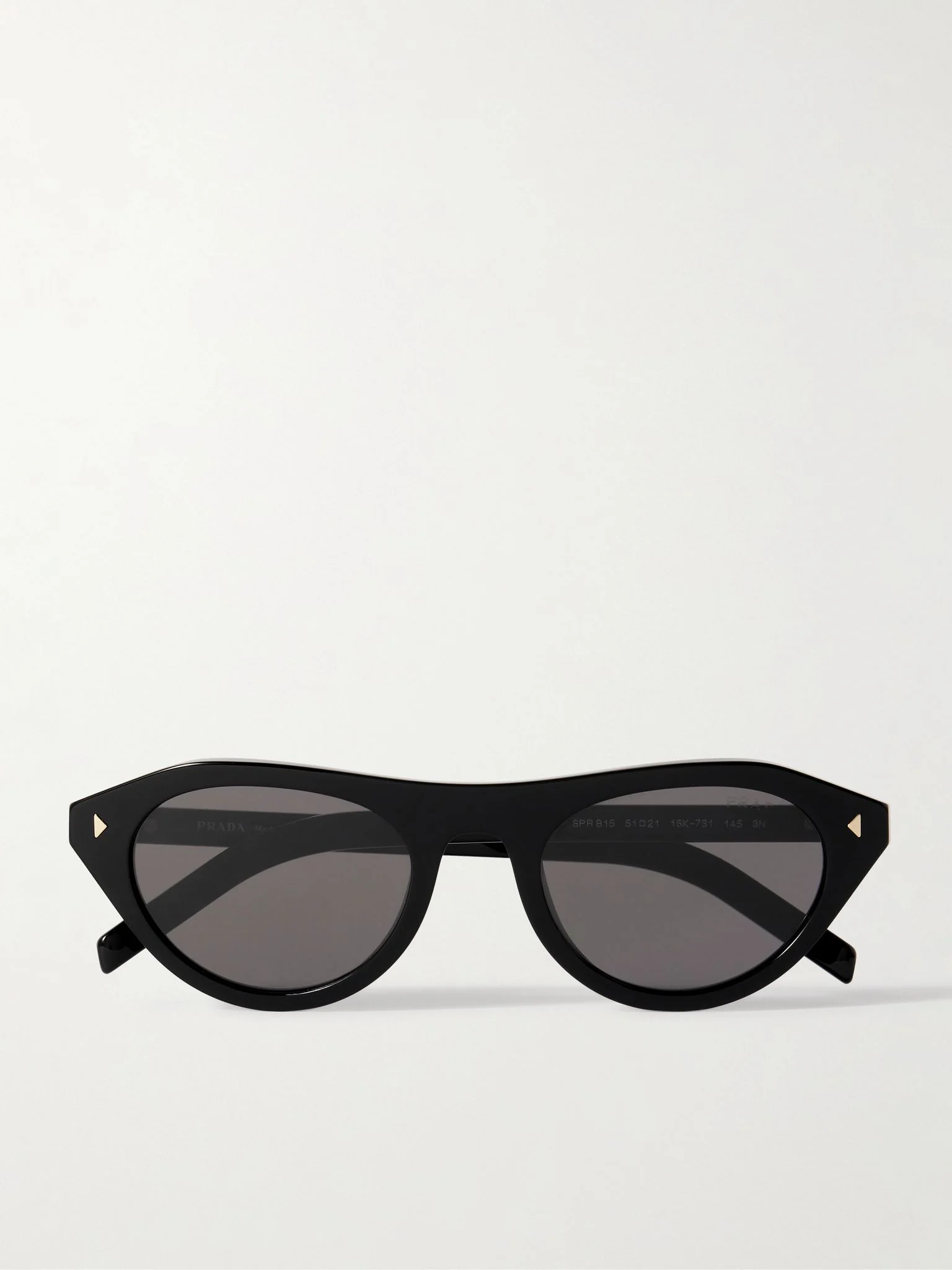 The sleek, angular frames of Prada Eyewear's sunglasses give them a retro-futuristic feel. They've been made in Italy from glossy acetate with gold-tone pins piercing the temples and matching hardware along the arms. Details & Care - Black acetate, gold-tone metal - Come with a case - 100% UV protection