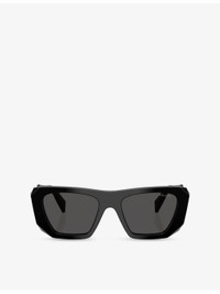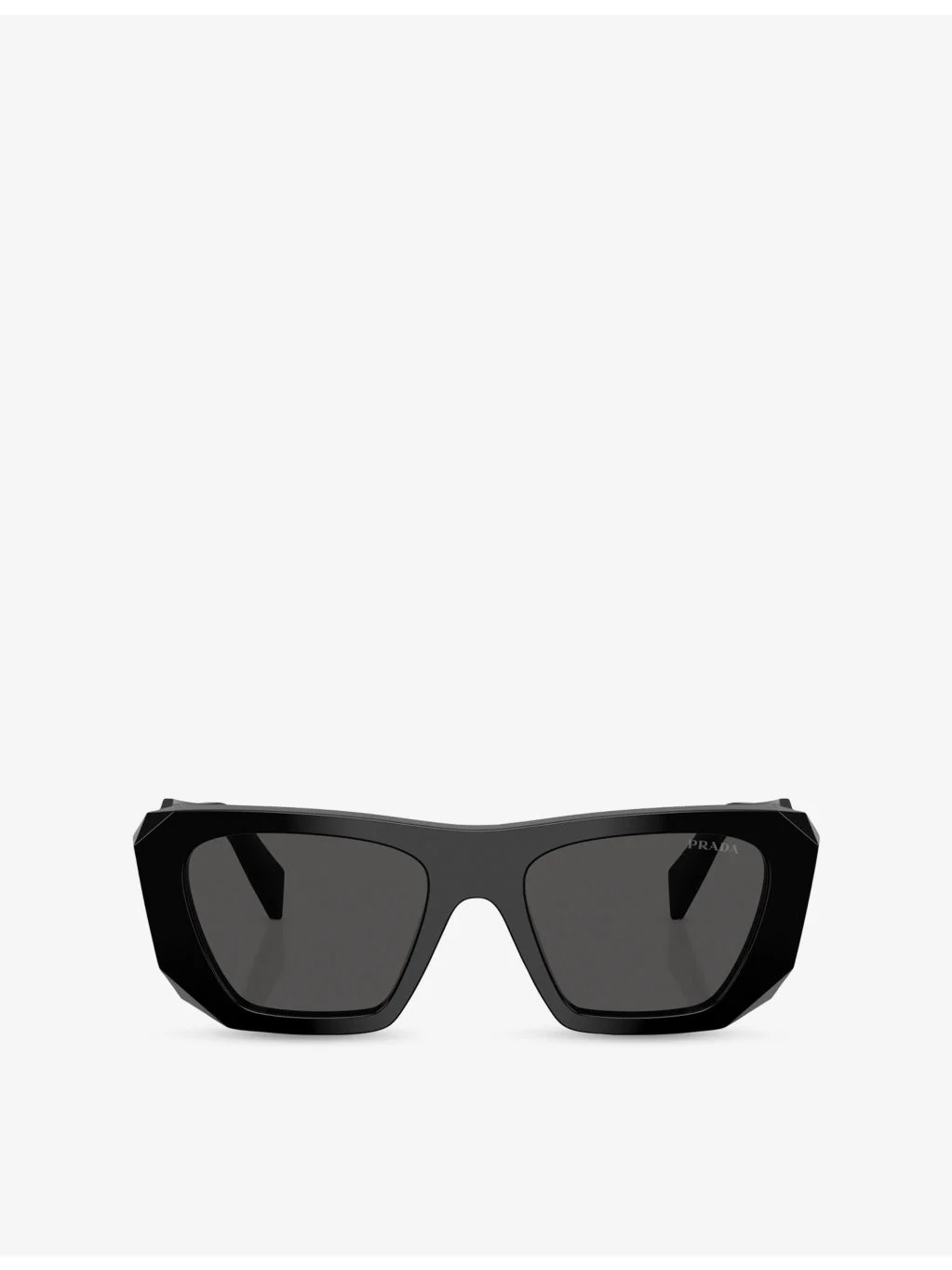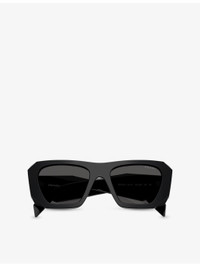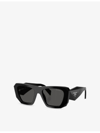 PRODUCT DETAILS - Prada acetate sunglasses - Style number: PR B18S - 100% acetate - 100% UV-protected lens, logo branded sides, silver-toned hardware, wide arms - Frame shape: square - Lens width 5.3cm, bridge size 1.9cm, temple length 14.5cm - Wipe with a clean, dry cloth - Comes with hard case and cloth Ref: R04450531