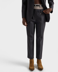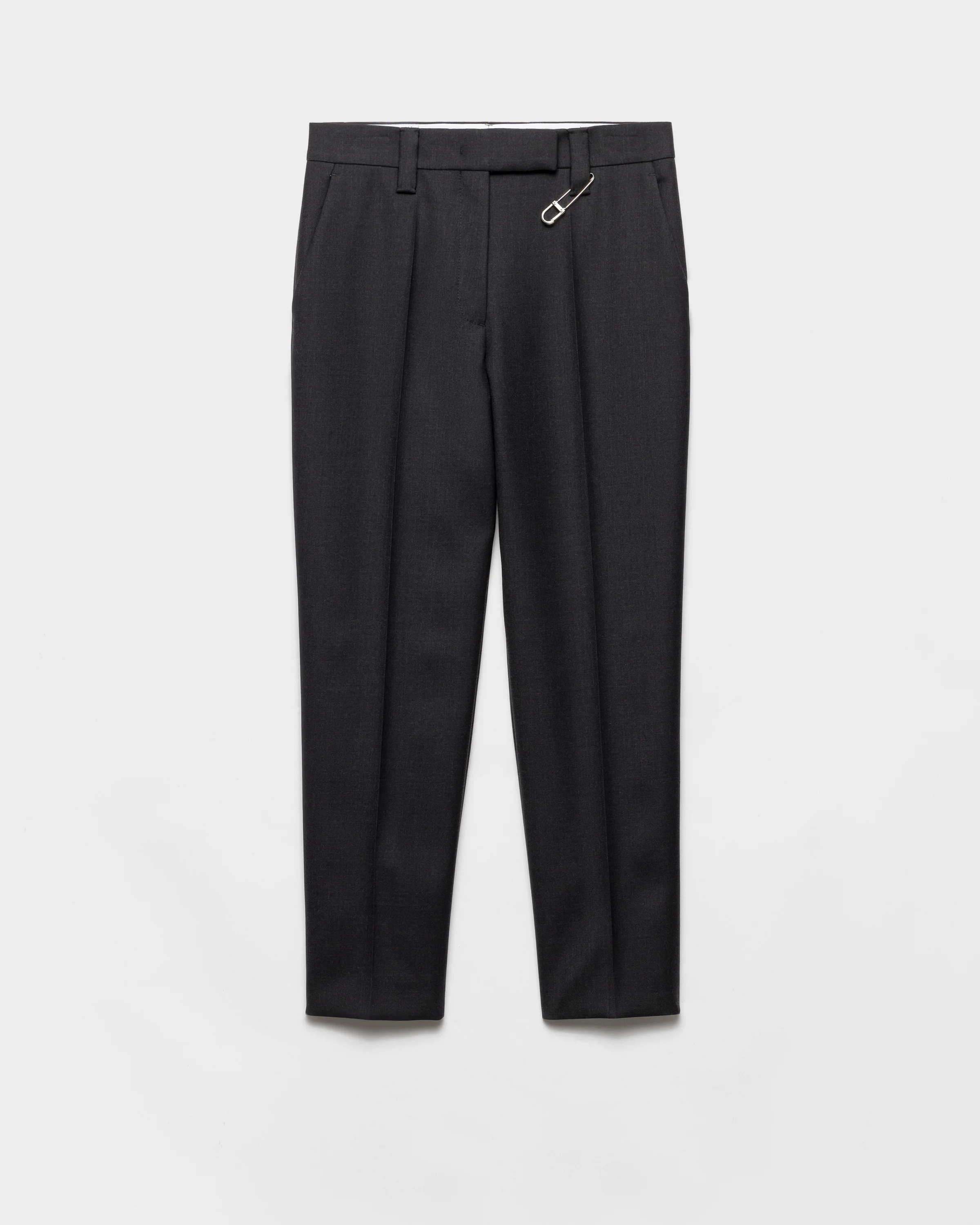 Tailored pants are reinterpreted with new details, an expression of contemporary, casual elegance. The straight-cut silhouette in wool gabardine is embellished with a decorative metal safety pin. - Product code: P267J_170P_F0308_S_OOO - Straight leg fit - Unlined - Zipper fly with hook - Angled front slash pockets - Back double welt pockets with button - Decorative safety pin - Imported - The model is 180 cm tall and wears a size 38 Height: 98cm MATERIALS Main material: 100% virgin wool