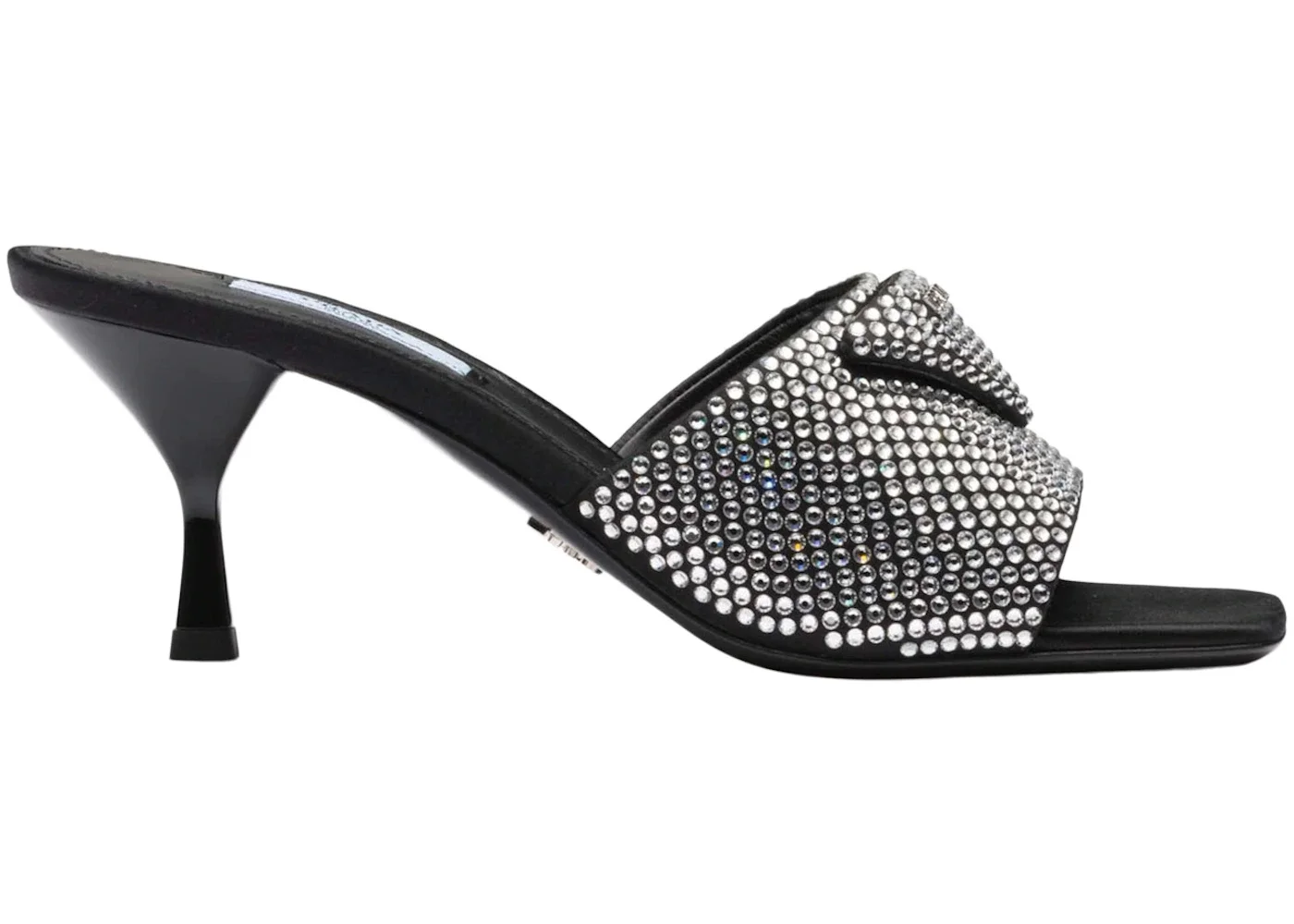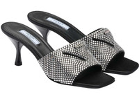 Prada 65mm Crystal Heeled Sandals Black Satin