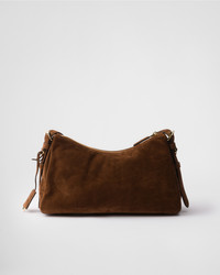 The sophisticated minimalism of the '90s inspires the new Prada Aimee bag. The design evokes the instinctive gesture of holding a bag with its soft suede silhouette, created for effortless wear on the shoulders or cross-body. - Product code: 1BC229_2C4S_F0324_V_LVM - Adjustable leather handle. Maximum drop 38 cm - Minimum drop 28 cm - Removable key ring - Metal hardware - Enameled metal triangle logo on the front - Zipper closure - Nappa leather lining with two pockets, including one with zipper - Imported Height: 18cm Width: 31cm Length: 10cm MATERIALS Main material: Calfskin