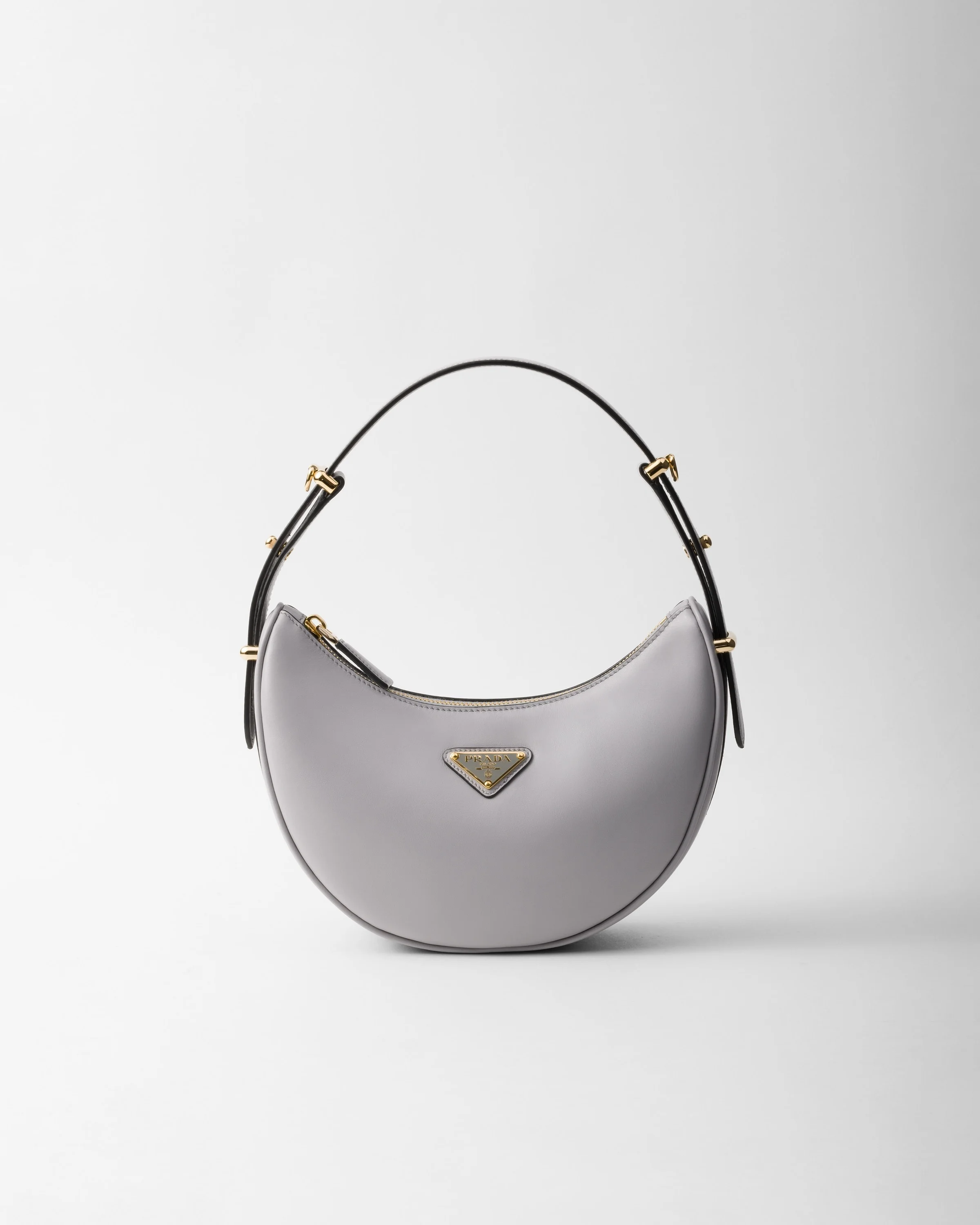 This sleek leather bag has a versatile, modernist allure. The accessory with a sinuous silhouette is completed by the leather extension and detachable shoulder strap for wearing different ways. The bag with nappa leather interior and metal hardware is embellished with the enameled metal triangle logo on the front. - Product code: 1BC194_ASK_F01IB_V_OOO - Detachable, adjustable leather handle - Detachable, adjustable leather shoulder strap. Max. length: 93 cm - Min. length: 83 cm - Max. drop length: 60 cm - Min. drop length: 55 cm - Metal hardware - Enameled metal triangle logo on the front - Zipper closure - Nappa leather interior with patch pocket - Imported Height: 18.5cm Width: 22.5cm Length: 6cm MATERIALS Main material: Calfskin