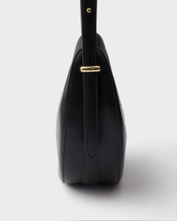 The contemporary design of the Prada Arque bag has been updated with new details that underline the versatile character of the style. The distinctive half-moon silhouette is enriched by the adjustable shoulder strap that suggests functional and dynamic use. Sleek and refined details complete the compact accessory, decorated with the enameled metal triangle logo. - Product code: 1BC274_ASK_F0002_V_OOO - Adjustable leather shoulder strap. Maximum length 84 cm - Minimum length 40 cm - Maximum drop 50 cm - Minimum drop 28 cm - Metal hardware - Enameled metal triangle logo on the front - Zipper closure - Logo-print nylon lining with patch pocket - Imported Height: 20.5cm Width: 25cm Length: 7.5cm MATERIALS Main material: Calfskin