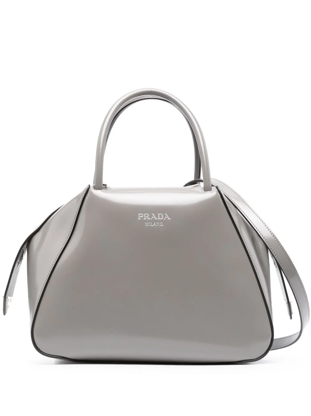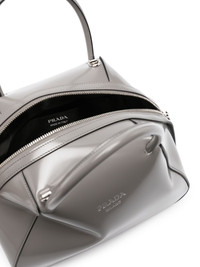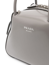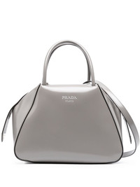 small Supernova leather tote bag Prada presents the Supernova bag in a small, medium grey iteration for SS23. It's characterised by its clean lines and geometric silhouette, and is stamped with silver-tone logo lettering. Highlights - Medium grey - Calf leather - Logo stamp to the front - Enamel triangle logo - Silver-tone hardware - Top zip fastening - Adjustable detachable shoulder strap - Two top handles - Main compartment - Internal slip pocket - Leather lining Composition Outer: Calf Leather 100% SIZE & FIT Model measurements Height 5 ft 10 in(1.77 m) Bust/Chest 32.28 in(82 cm) Hips 35.03 in(89 cm) Waist 25.19 in(64 cm) Measurement DEPTH 5.11 in(13 cm) HANDLE 4.33 in(11 cm) HEIGHT 7.08 in(18 cm) STRAP 22.83 in(58 cm) WIDTH 9.84 in(25 cm)