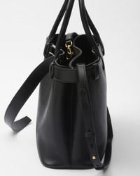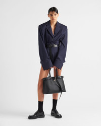 Clean lines and refined elements express Prada's dual aesthetic that moves between simplicity and detail, functionality and elegance. This leather bag with nappa interior summarizes the stylistic codes of the brand in a pragmatic yet sophisticated design. The roomy silhouette is characterized by a multifaceted soul, expressed by the interchangeable belt that enriches the accessory with a unique and contemporary touch. The lettering logo, embossed in 22 karat gold leaf, decorates the modern, versatile style. - Product code: 1BA416_2CY9_F0002_V_DBO - Decorative belt with buckle - Leather handles - Detachable, adjustable leather shoulder strap Maximum length 110 cm - Minimum length 100 cm - Maximum drop 55 cm - Minimum drop 50 cm - Metal hardware - Lettering logo embossed on the leather front - Nappa leather interior with a center pocket - Imported Height: 27.5cm Width: 37.5cm Length: 14cm MATERIALS Main material: Calfskin