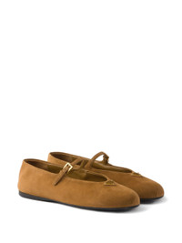 brown suede upper strap detail metal buckle enamelled triangle logo rubber sole - Color: BROWN - Made in: Italy - Designer Style ID: 1F793N F 005 008 F0401 Composition and care Lining Composition Calf Leather: 100.0%, Outer Composition Calf Suede: 100.0%, Sole Composition Rubber: 100.0%
