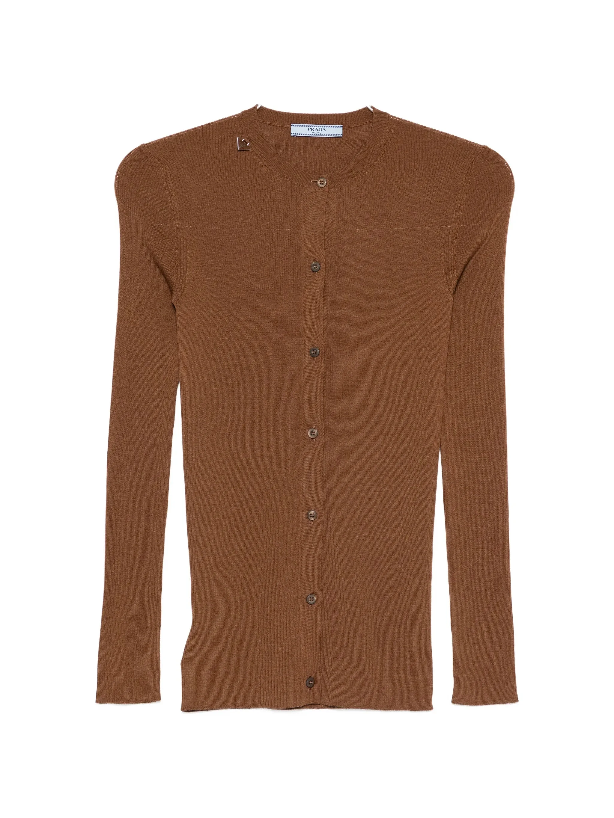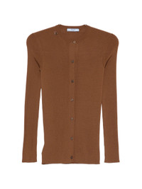 brown rib knit round neck front button fastening long sleeves metal logo detail - Color: BROWN - Made in: Italy - Designer Style ID: P25O06 S OOO 18PX F0005 Composition and care Virgin Wool: 100.0%