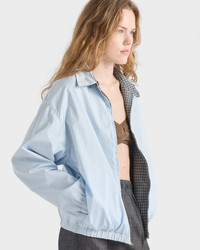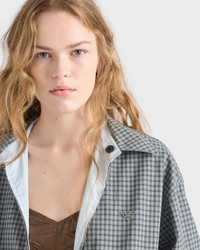 Oversized yet light volumes define this poplin blouson jacket animated by a checked motif with vintage charm. The style is characterized by a wrinkled effect that gives the design a well-worn look and distinctive character. - Product code: P8040R_188M_F0D65_S_OOO - Shirt-style collar - Sleeves with elasticized cuff - Zipper closure - Angled pockets - Lined - Metal triangle logo - Imported - The model is 180 cm tall and wears a size 38 Height: 60cm MATERIALS Wool