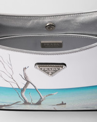 In a celebration of creativity and personal expression, Prada reimagines the iconic Cleo bag with a print featuring a trompe-l'oeil effect. The leather creates a mirrored effect like an optical illusion on which the original print stands out. - Product code: 1BC499_2C34_F0118_V_OO5 - Leather handle - Metal hardware - Enameled metal triangle logo on the front - Magnetic closure - Logo-print nylon lining with patch pocket - Imported Height: 22cm Width: 27cm Length: 6cm MATERIALS Main material: Calfskin