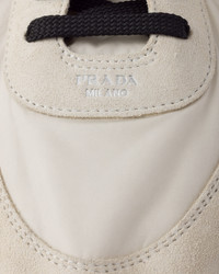 This incredibly lightweight sneaker with a structured design made of Re-Nylon and suede features a mix of materials that embodies Prada's sporty and artisanal soul. Its flat sole recalls the classic ballerina, enriched with elastic on the sides that makes it easy to slip on. This product does not contribute to the SEA BEYOND educational program. - Product code: 1E959N_D7C_F0304_F_005 - Leather lining - Screen-printed logo - Cotton laces - Rubber sole, 05 mm - Tread with a geometric pattern - Removable leather-covered insole - Imported MATERIALS Main material: Recycled polyamide recycled polyester