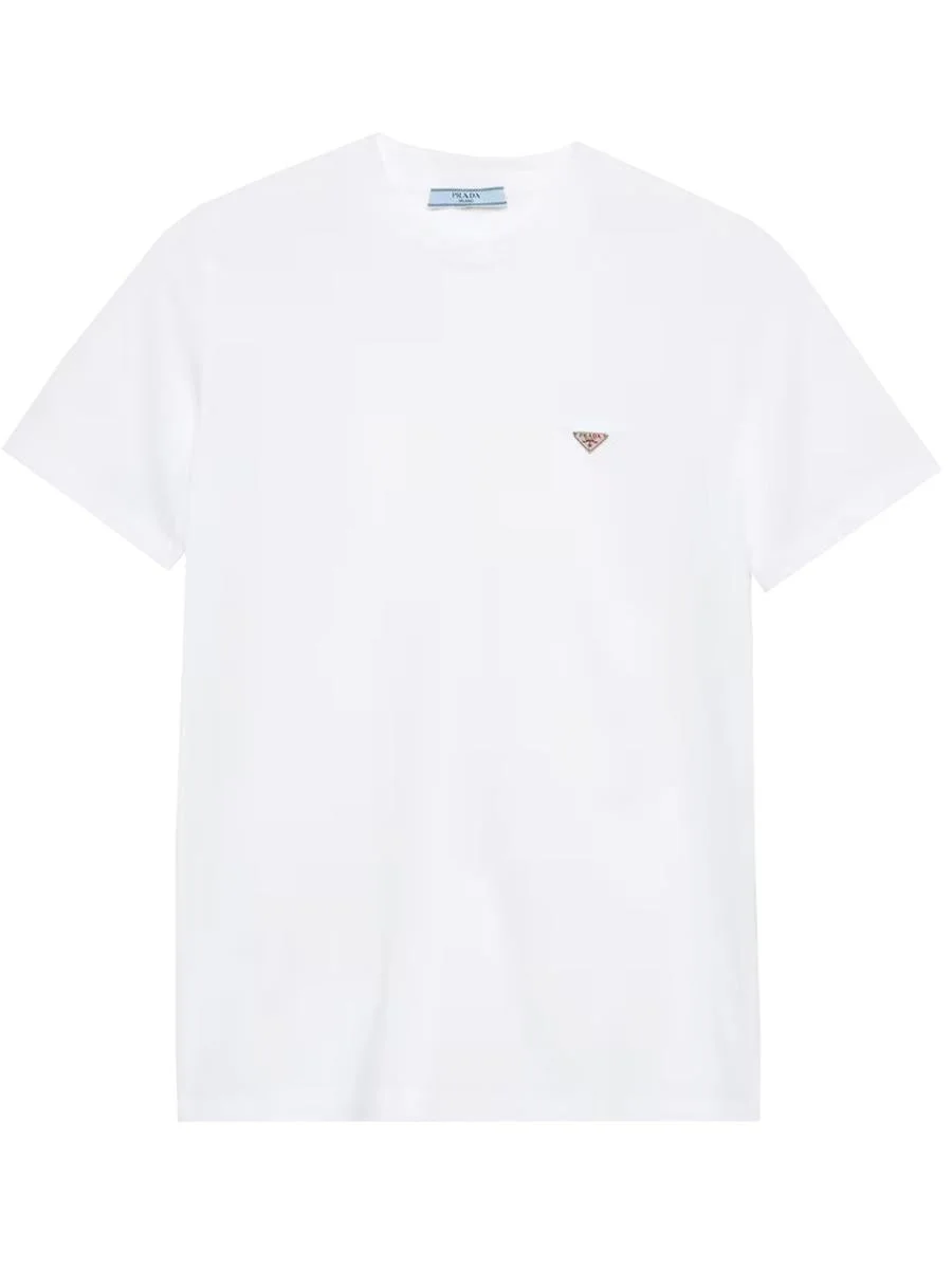 Jersey T-shirt for a casual and modern look. Straight fit, round neck and short sleeves. Enameled metal triangle logo detail for a distinctive touch. Perfect for any everyday outfit. Gender: Women Material: COTTONTTON | 100%COTTON Color: WHITE Made in: Imported Product ID: 35838 15ZG_F0009 BIANCO *Import tax/duty will be calculated at checkout (If applicable)