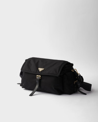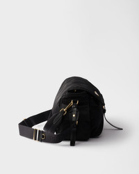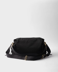 This bag, a perfect synthesis of refinement and functionality, is made of Re-Nylon with a soft silhouette and multiple pockets. The light, pragmatic design is defined by the combination of sporty and versatile elements with iconic and timeless touches. The roomy accessory completed with leather details is decorated with the enameled metal triangle logo. For sustainable care to preserve the product's characteristics and reduce microfiber shedding, we recommend not washing the item too often. Let the product air out after every use and have it dry cleaned at a specialized ecological dry cleaners. - Product code: 1BD391_RDLN_F0002_V_NOO - Padded tape handle. Length 52 cm, drop 28 cm - Detachable, adjustable woven logo tape shoulder strap. Maximum length 104 cm - Minimum length: 74 cm - Maximum drop 50 cm - Minimum drop 35 cm - Front zipper pocket - Side pockets with flap - Metal hardware - Enameled metal triangle logo on the flap - With zipper closure, flap and strap - Re-Nylon lining with patch pocket - Imported Height: 19cm Width: 37.5cm Length: 12cm MATERIALS Main material: Recycled polyamide