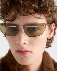 Metal sunglasses with an ultra-light silhouette. The rimless lenses integrated into the metal frame create a clean, sophisticated aesthetic. The Prada lettering logo is delicately engraved on the temples. - Product code: SPRC52_E5AK_FE70G_C_064 - Metal frame front - Color: Gold - -Frame not compatible with graduated lenses - 100% UVA / UVB protection - Adjustable nose pads suitable for any fit - Lens-nose-temple measurement: 64-13-145 mm - Article comes with dedicated packaging - Other colors available - Imported MATERIALS Metal