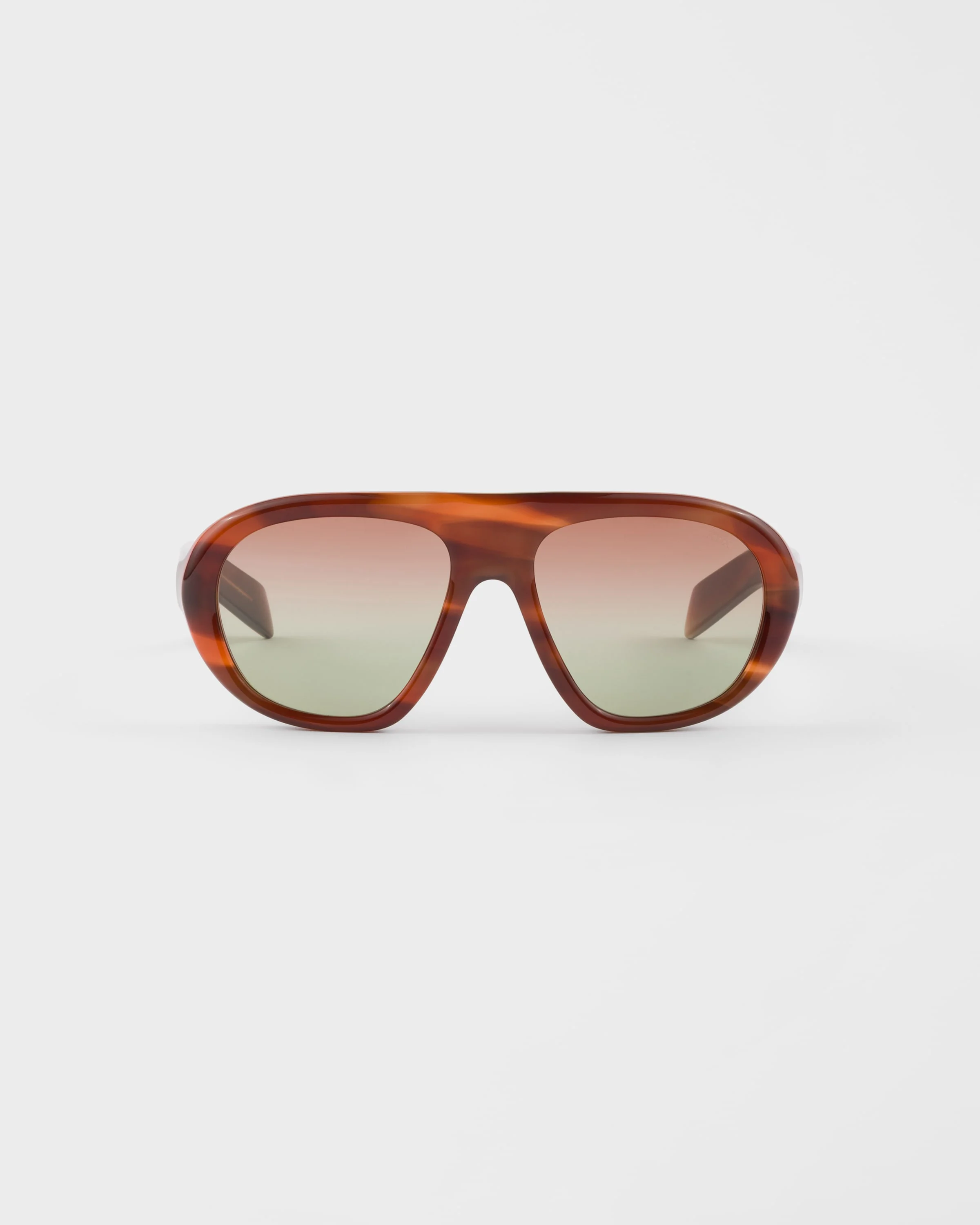 Acetate sunglasses with an oversized design. The frame features an oversized pilot silhouette and large volumes that give it a contemporary, feminine look. The curved temples are decorated with the enameled Prada logo. - Product code: SPRC05_E24G_FE70T_C_057 - Recycled bio-acetate frame front - Color: Streaked Oak Brown - Frame compatible with graduated lenses - 100% UVA / UVB protection - Standard Fit - Lens-nose-temple measurement: 57-18-135 mm - Article comes with dedicated packaging - Other colors available - Imported MATERIALS Acetate