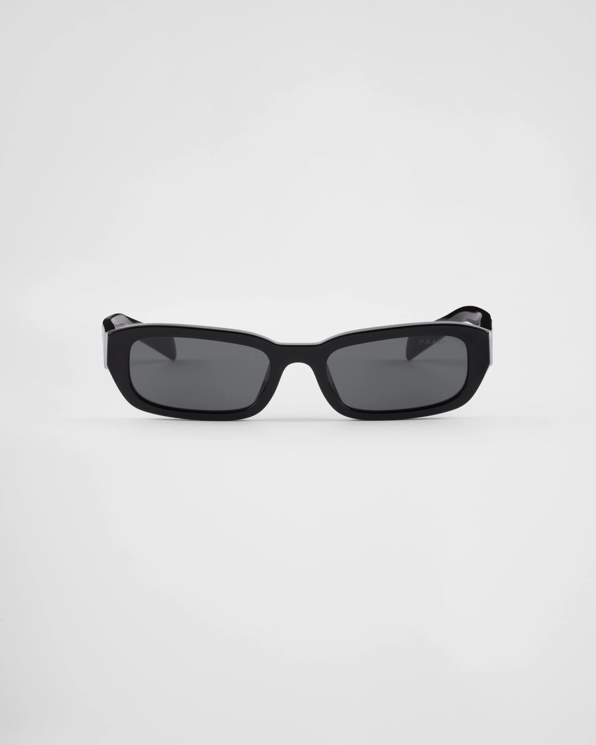 Acetate sunglasses characterized by faceted rims and geometric lines. The temples feature refined three-dimensional workmanship that highlights the iconic triangle logo. - Product code: SPRB06_E16K_FE08Z_C_053 - Acetate frame front - Color: Black - Frame compatible with graduated lenses - 100% UVA / UVB protection - Standard fit - Lens-nose-temple measurement: 53-19-145 mm - Article comes with dedicated packaging - Other colors available - Imported MATERIALS Acetate