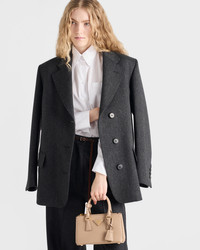 The Prada Galleria bag with an elegant, timeless design reflects the many facets of the Prada identity. The iconic style in a mini version with a new, elongated silhouette has a detachable shoulder strap for crossbody wear. The emblematic crosshatch texture of Saffiano leather gives the bag a distinctive, versatile character. - Product code: 1BA916_NZV_F0770_V_EOO - Leather handles - Detachable, adjustable leather shoulder strap. Maximum length 120 cm - Minimum length 110 cm - Maximum drop 60 cm- Minimum drop 55 cm - Removable leather key ring - External zipper pockets - Metal hardware - Leather triangle with metal lettering logo on the front - Snap closure on the sides - Logo-printed nylon interior with two pockets, including one with zipper - With purse feet - Imported Height: 12.5cm Width: 21cm Length: 8.5cm MATERIALS Main material: Calfskin