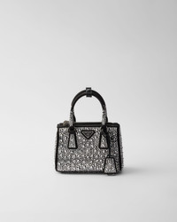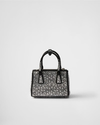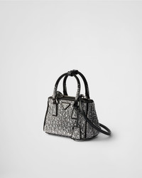 The iconic Prada Galleria embodies the brand's refined elegance and exceptional craftmanship with its timeless design. Presented in a micro version, the style is made from satin with dazzling crystals of different sizes, creating a play of sparkles and glimmers. - Product code: 1BA907_2AWL_F063R_V_EOY - All-over synthetic crystals - Satin handles - Adjustable and detachable leather shoulder strap. Maximum length 120 cm - Minimum length 110 cm - Maximum drop 60 cm - Minimum drop 55 cm - Removable key holder - External pockets with zipper closure - Metal hardware - Enamelled metal triangle logo on the front - Side snap button closure - Sealed nylon interior with two pockets, including one with zipper - With purse feet - Imported Height: 12.5cm Width: 18cm Length: 8.5cm MATERIALS Main material: Silk viscose