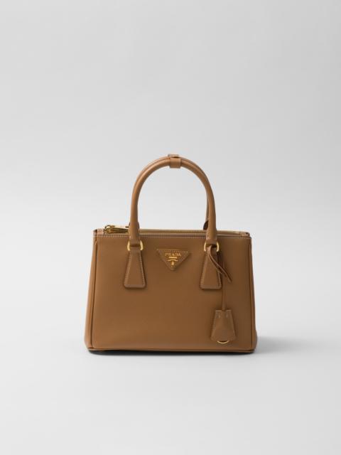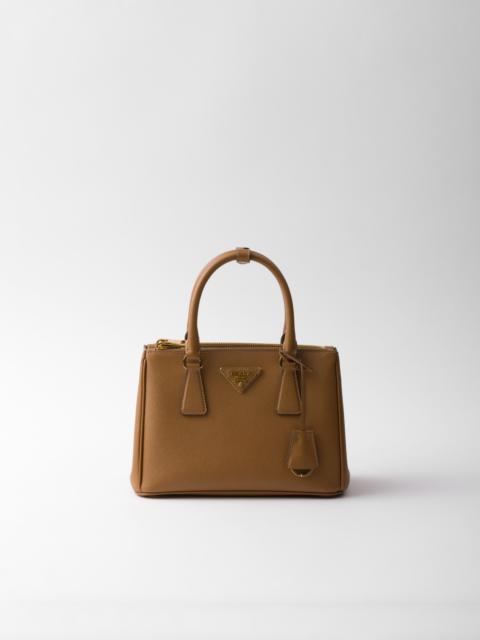 The Prada Galleria bag, which exemplifies Prada's centennial excellence in luxury leather goods, becomes a reflection of the brand's modernity and stylistic identity that seeks to interpret kaleidoscopic contemporaneity through a pragmatic design and structured lines. The accessory, presented in the small version, is made of iconic Saffiano leather that was patented by the founder of the brand and features a crosshatch texture and waxed finish. The Prada Galleria bag, named after the historic Prada store opened by Mario Prada in 1913 in Galleria Vittorio Emanuele II in Milan, expresses the quintessence of the brand's timeless elegance. - Product code: 1BA896_NZV_F0924_V_EOO - Leather handles - Detachable, adjustable leather shoulder strap. Max. length: 120 cm - Min. length: 110 cm - Max. drop length: 60 cm - Min. drop length: 55 cm - Removable leather key ring - External zipper pockets - Metal hardware - Leather triangle with metal lettering logo on the front - Snap closure on the sides - Logo-print nylon lining with two pockets, including one with zipper - With purse feet - Imported Height: 16.5cm Width: 24.5cm Length: 11cm MATERIALS Main material: Calfskin