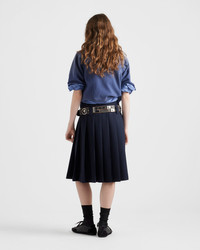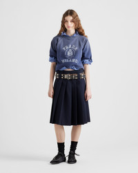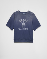 College style inspires the design of this oversized cotton fleece tee with a used finish. The vintage charm of the style is emphasized by the printed logo on the front, while the knit triangle adds an unexpected touch of texture and color. - Product code: 135730_16VZ_F0124_S_OOO - Menswear fit - Short sleeves - Ribbed knit crew neck - Ribbed knit hem - Garment-dyed - Prada logo printed on the front - Knit conceptual triangle on the back - Imported - The model is 178 cm tall and wears a size 38 Height: 60cm MATERIALS Main material: 100% cotton
