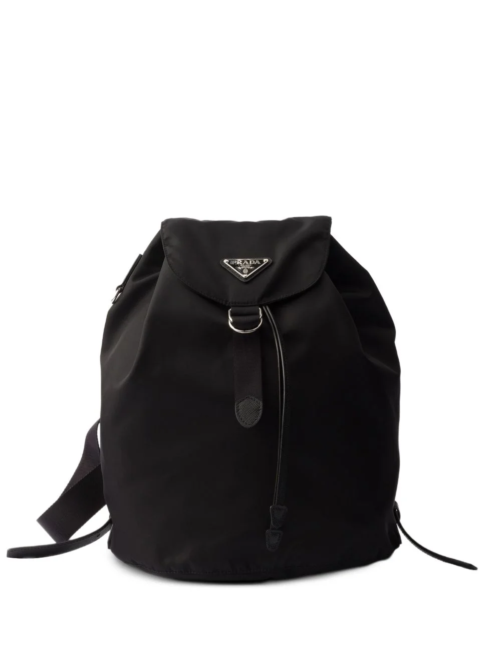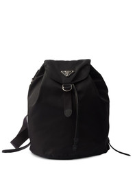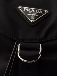 small Re-Nylon backpack Highlights - Black - Adjustable shoulder straps - Enamel triangle logo - Drawstring fastening - Top flap Composition Outer: Calf Leather 100%, Recycled Polyamide 100% SIZE & FIT Measurement DEPTH 5.11 in(13 cm) HEIGHT 12.59 in(32 cm) WIDTH 10.23 in(26 cm) Washing instructions Read Manufacturer Guidelines