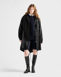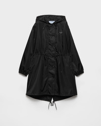 Versatile, lightweight Re-Nylon gives this raincoat a refined yet functional character. The drawstring at the waist and hem makes it possible to play with the volumes of the silhouette decorated with the enameled metal triangle logo. For sustainable care to preserve the product's characteristics and reduce microfiber shedding, we recommend not washing the item too often. Let the product air out after every use and have it dry cleaned at a specialized ecological dry cleaners. - Product code: 29C285_1WQ8_F0002_S_OOO - Parka fit - Unlined garment - Hood - Long sleeves - Elasticized cuffs - Welt pockets - Enameled metal triangle logo - Zipper closure with buttons - Drawstring hood - Drawstring at the waist and hem - Imported - The model is 178 cm tall and wears a size 38 Height: 102cm MATERIALS Main material: 100% recycled polyamide
