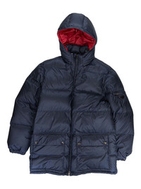 triangle-logo coat Highlights - Navy blue - Two-way zip fastening - Padded design - Quilted finish - Classic hood - Sleeve zip pocket - Front flap pockets - Long sleeves - Elasticated cuffs - Straight hem Composition Fabric 100%