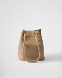 Unusual combinations animate this Re-Nylon bag inspired by the timeless codes of nautical style. Sliding cord handles underline the versatile character of the accessory that can be worn carried by hand or over the shoulder, completed by the enameled metal triangle logo. For sustainable care to preserve the product's characteristics and reduce microfiber shedding, we recommend not washing the item too often. Let the product air out after every use and have it dry cleaned at a specialized ecological dry cleaners. - Product code: 1BE082_2HG8_F0040_V_OOO - Sliding cord and leather handles, drop from 23 to 50 cm - Metal hardware - Enameled metal triangle logo on the front - Logo-print Re-Nylon interior with zipper pocket - Imported Height: 28cm Width: 23.5cm Length: 16.5cm MATERIALS Main material: Recycled polyamide