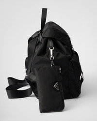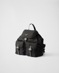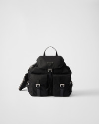 A blend of materials with modern allure and timeless charm are the choice for this iconic backpack of the brand that combines a base made of Re-Nylon, a sustainable evolution of the industrial fabric that is a Prada hallmark, and Saffiano leather details. The enameled metal triangle logo, an historic element reinterpreted each season on designs with contemporary charm, decorates the front. For sustainable care to preserve the product's characteristics and reduce microfiber shedding, we recommend not washing the item too often. Let the product air out after every use and have it dry cleaned at a specialized ecological dry cleaners. - Product code: 1BZ811_RV44_F0002_V_OTO - Saffiano details - Adjustable woven nylon straps and handle - Removable Re-Nylon zipper pouch - Front pockets with flap and buckle closure - Metal hardware - Enameled metal triangle logo on the flap - Drawstring closure with flap and buckle - Re-Nylon logo-print lining with two pockets, including one with zipper - Imported Height: 32cm Width: 30cm Length: 15cm MATERIALS Main material: Recycled polyamide