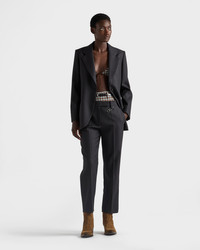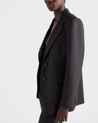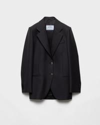 Architectural simplicity and sartorial rigor define this gabardine jacket. A classic lapel, welt pockets, and fabric triangle logo: every detail is an expression of Prada's artisan attention. - Product code: P545P_170P_F0308_S_OOO - Straight fit - Lined - Notch lapel - Front button closure - Straight three-button sleeves - Welt pockets - Fabric triangle logo - Imported - The model is 180 cm tall and wears a size 38 Height: 74cm MATERIALS Main material: 100% virgin wool