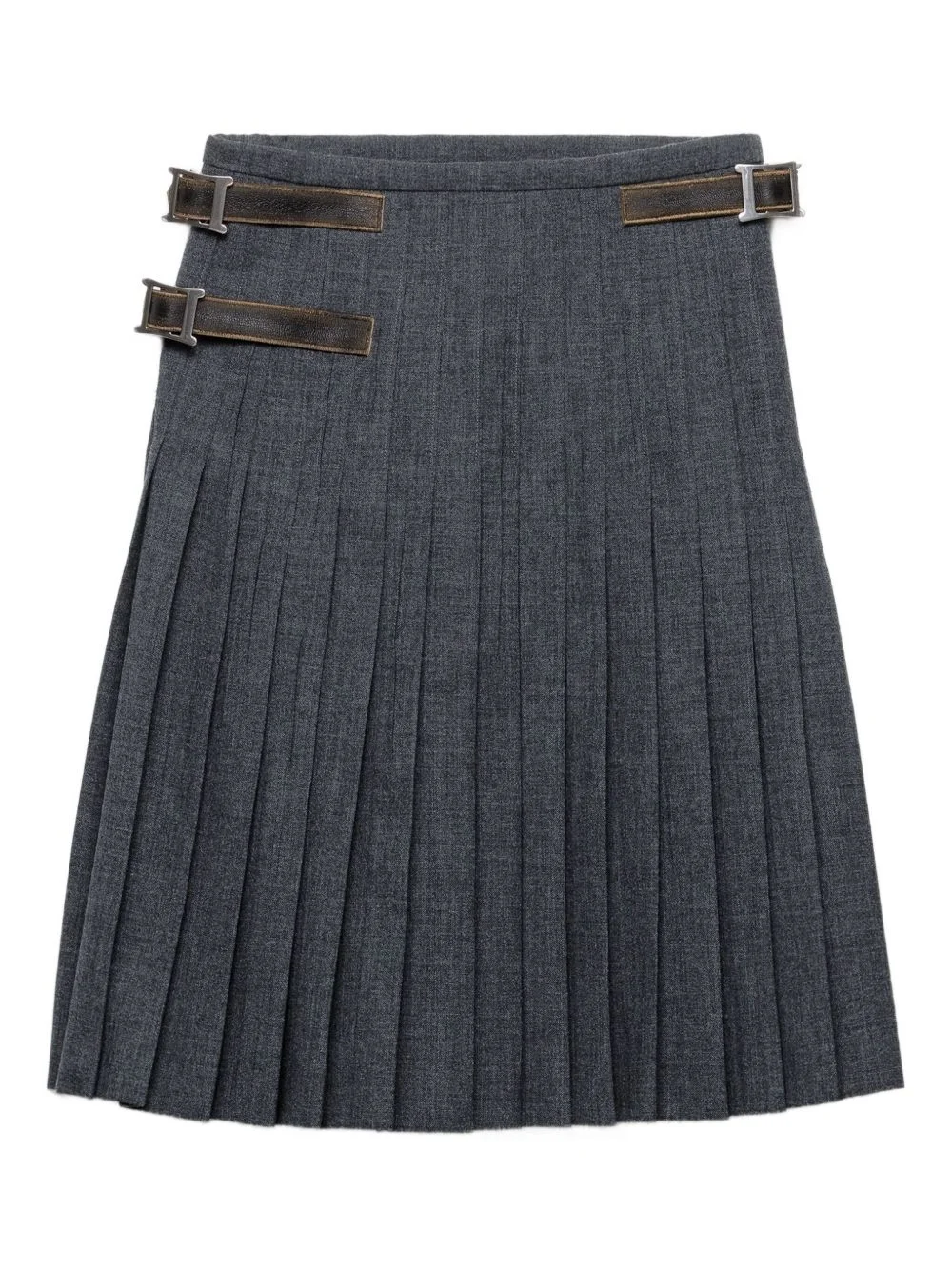 pleated leather-strap midi skirt Highlights - Grey - Pleated design - Leather-strap detail - Side fastening - Lined Composition Virgin Wool 100% Washing instructions Read Manufacturer Guidelines