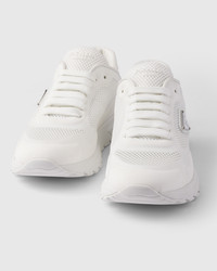 These fabric sneakers with a sporty silhouette and pragmatic, modern design are characterized by their comfortable rubber sole. The shoe, an evolution of the iconic Prax style, is enriched with the Prada logo. - Product code: 1E920N_1ABK_F0009_F_035 - Leather lining - Enameled metal triangle logo - Polyester laces - Rubber sole, 35 mm - Removable leather-covered insole - Imported MATERIALS Main material: Elastane polyamide polyester polyurethane wool