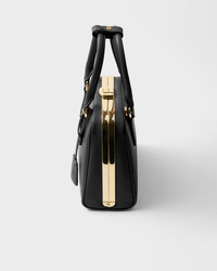 From the Prada archives, the Pyramid bag marks the return of a silhouette with timeless appeal, an expression of the constant dialogue between modernity and tradition. The distinct and unmistakable shape is emphasized by the emblematic Saffiano leather with a glossy finish. The structured design, carried by hand or worn with a detachable shoulder strap, embodies refined and timeless elegance. - Product code: 1BK026_2AO6_F0002_V_OOO - Patent Saffiano leather handles - Detachable, adjustable patent Saffiano leather shoulder strap. Maximum length 110 cm - Minimum length: 100 cm - Maximum drop 55 cm - Minimum drop 50 cm - Removable key ring - Metal hardware - Leather triangle with metal lettering logo on the front - Zipper closure - Nappa lining with two patch pockets - Imported Height: 15cm Width: 22cm Length: 7.5cm MATERIALS Main material: Calfskin