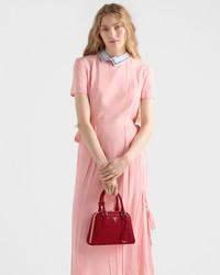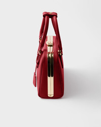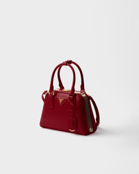 From the Prada archives, the Pyramid bag marks the return of a silhouette with timeless appeal, an expression of the constant dialogue between modernity and tradition. The distinct and unmistakable shape is emphasized by the emblematic Saffiano leather with a glossy finish. The structured design, carried by hand or worn with a detachable shoulder strap, embodies refined and timeless elegance. - Product code: 1BK026_2AO6_F0E06_V_OOO - Patent Saffiano leather handles - Detachable, adjustable patent Saffiano leather shoulder strap. Maximum length 110 cm - Minimum length: 100 cm - Maximum drop 55 cm - Minimum drop 50 cm - Removable key ring - Metal hardware - Leather triangle with metal lettering logo on the front - Zipper closure - Nappa lining with two patch pockets - Imported Height: 15cm Width: 22cm Length: 7.5cm MATERIALS Main material: Calfskin
