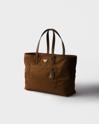 This tote bag with timeless charm, a re-edition of an archive design, sums up Prada codes in a sophisticated and pragmatic silhouette. The style with clean lines is made of Re-Nylon, an innovative regenerated nylon fabric that is the sustainable evolution of a distinctive material of the brand. Elegant Saffiano leather details complete the roomy accessory decorated with the iconic signature touch of the enameled metal triangle logo. For sustainable care to preserve the product's characteristics and reduce microfiber shedding, we recommend not washing the item too often. Let the product air out after every use and have it dry cleaned at a specialized ecological dry cleaners. - Product code: 1BG527_R064_F0134_V_OOO - Saffiano leather handles - Front pocket - Metal hardware - Enameled metal triangle logo on the front - Nylon lining with two pockets, including one with zipper - Imported Height: 31cm Width: 43cm Length: 15cm MATERIALS Main material: Recycled polyamide