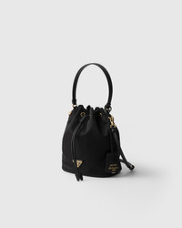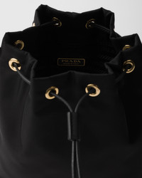 This mini-bag made of Re-Nylon with a bucket silhouette is a Re-Edition of an archive style. The accessory, worn as a handbag or with a detachable shoulder strap, is enriched with leather details, while the enameled metal triangle logo completes it with its iconic signature touch. For sustainable care to preserve the product's characteristics and reduce microfiber shedding, we recommend not washing the item too often. Let the product air out after every use and have it dry cleaned at a specialized ecological dry cleaners. - Product code: 1BE067_RV44_F0002_V_WOP - Detachable, adjustable leather shoulder strap Maximum length 108 cm - Minimum length 92 cm - Maximum drop 54 cm - Minimum drop 46 cm - Removable Re-Edition leather key ring - Metal hardware - Enameled metal triangle logo on the front - Drawstring closure - Re-Nylon lining - Imported Height: 19.5cm Width: 15.5cm Length: 10cm MATERIALS Main material: Recycled polyamide