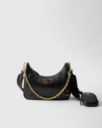 Inspired by the iconic mini hobo style, the Prada Re-Edition 2005 bag is presented in leather with a versatile design, enriched by the removable pouch that adds a contemporary touch. - Product code: 1BH204_2C6A_F0002_V_V9O - Removable chain handle - Detachable, adjustable logo-print woven tape shoulder strap, length: 85 cm. Maximum length 104 cm - Minimum length 70 cm - Maximum drop 60 cm- Minimum drop 43 cm - Removable leather zipper pouch and Re-Edition key ring - Metal hardware - Enameled metal triangle logo on the front - Zipper closure - Logo-print nylon lining - Imported Height: 18cm Width: 22cm Length: 6cm MATERIALS Main material: Calfskin