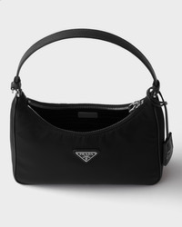 Inspired by the iconic mini hobo bag, the Prada Re-Edition 2005 shoulder bag is made of Re-Nylon: a regenerated nylon yarn produced from recycled, purified plastic trash collected in the ocean, fishing nets and textile waste fibers. Practical and feminine, the mini bag is decorated with iconic Saffiano leather trim. It features a contemporary mix of materials. For sustainable care to preserve the product's characteristics and reduce microfiber shedding, we recommend not washing the item too often. Let the product air out after every use and have it dry cleaned at a specialized ecological dry cleaners. - Product code: 1N204X_R064_F0002 - Zipper closure - Enameled metal triangle logo - Leather handle - Re-Nylon logo lining - Imported Height: 18cm Width: 22cm Length: 6.5cm MATERIALS Main material: Recycled Polyamide