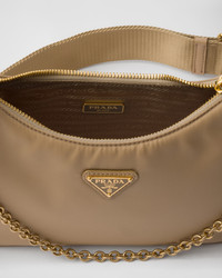 Inspired by the iconic mini hobo bag, the Prada Re-Edition 2005 shoulder bag is made of Re-Nylon: a regenerated nylon yarn (ECONYL®)produced from recycled, purified plastic trash collected in the ocean, fishing nets and textile waste fibers. This versatile bag with Saffiano leather trim comes with a detachable pouch attached to the shoulder strap. For sustainable care to preserve the product's characteristics and reduce microfiber shedding, we recommend not washing the item too often. Let the product air out after every use and have it dry cleaned at a specialized ecological dry cleaners. - Product code: 1BH204_R064_F0Y8C_V_V9L - Saffiano trim - Removable chain handle - Detachable adjustable 85 cm logo-print woven nylon shoulder strap - Removable Re-Nylon zipper pouch with Re-Edition keychain - Metal hardware - Enameled metal triangle logo on the front - Zipper closure - Re-Nylon logo lining - Imported Height: 18cm Width: 22cm Length: 6cm MATERIALS Main material: Recycled polyamide