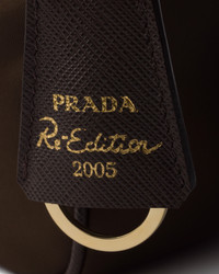 Inspired by the iconic mini hobo bag, the Prada Re-Edition 2005 shoulder bag is made of Re-Nylon: a regenerated nylon yarn (ECONYL®)produced from recycled, purified plastic trash collected in the ocean, fishing nets and textile waste fibers. This versatile bag with Saffiano leather trim comes with a detachable pouch attached to the shoulder strap. For sustainable care to preserve the product's characteristics and reduce microfiber shedding, we recommend not washing the item too often. Let the product air out after every use and have it dry cleaned at a specialized ecological dry cleaners. - Product code: 1BH204_R064_F0DFH_V_V9L - Saffiano trim - Removable chain handle - Detachable adjustable 85 cm logo-print woven nylon shoulder strap - Removable Re-Nylon zipper pouch with Re-Edition keychain - Metal hardware - Enameled metal triangle logo on the front - Zipper closure - Re-Nylon logo lining - Imported Height: 18cm Width: 22cm Length: 6cm MATERIALS Main material: Recycled polyamide