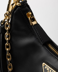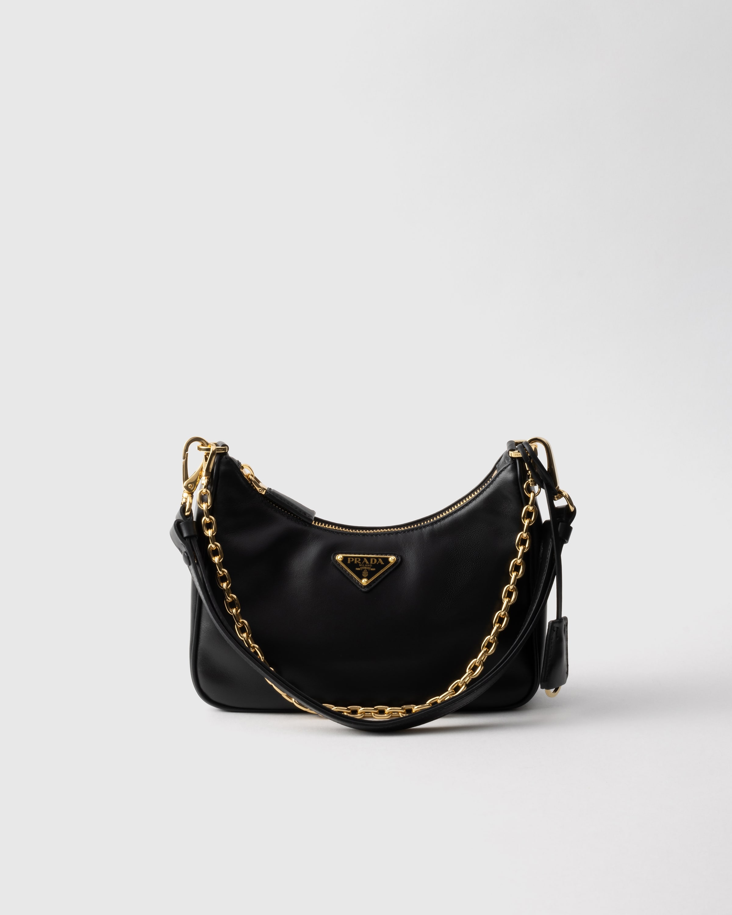 Sleek lines and iconic details define this leather bag with a versatile design characterized by removable handles and decorated with the enameled metal triangle logo. - 商品品番: 1BC204_2C6A_F0002_V_QOM - Detachable chain handle and leather strap - Removable leather key ring - Metal hardware - Enameled metal triangle logo on the front - Zipper closure - Logo-print nylon lining - インポート 高さ: 18cm 幅: 22cm マチ: 6cm MATERIALS Leather