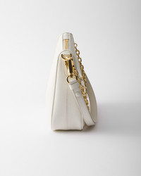 Sleek lines and iconic details define this versatile bag characterized by removable chain and leather handles. The accessory made of Saffiano leather is embellished with the distinctive enameled metal triangle logo. - Product code: 1BC204_NZV_F097W_V_QOM - Detachable, adjustable chain and leather handle - Removable leather key ring - Metal hardware - Enameled metal triangle logo on the front - Zipper closure - Logo-print nylon lining - Imported Height: 18cm Width: 22cm Length: 6cm MATERIALS Leather