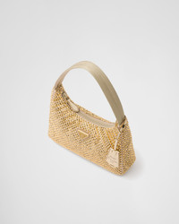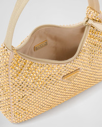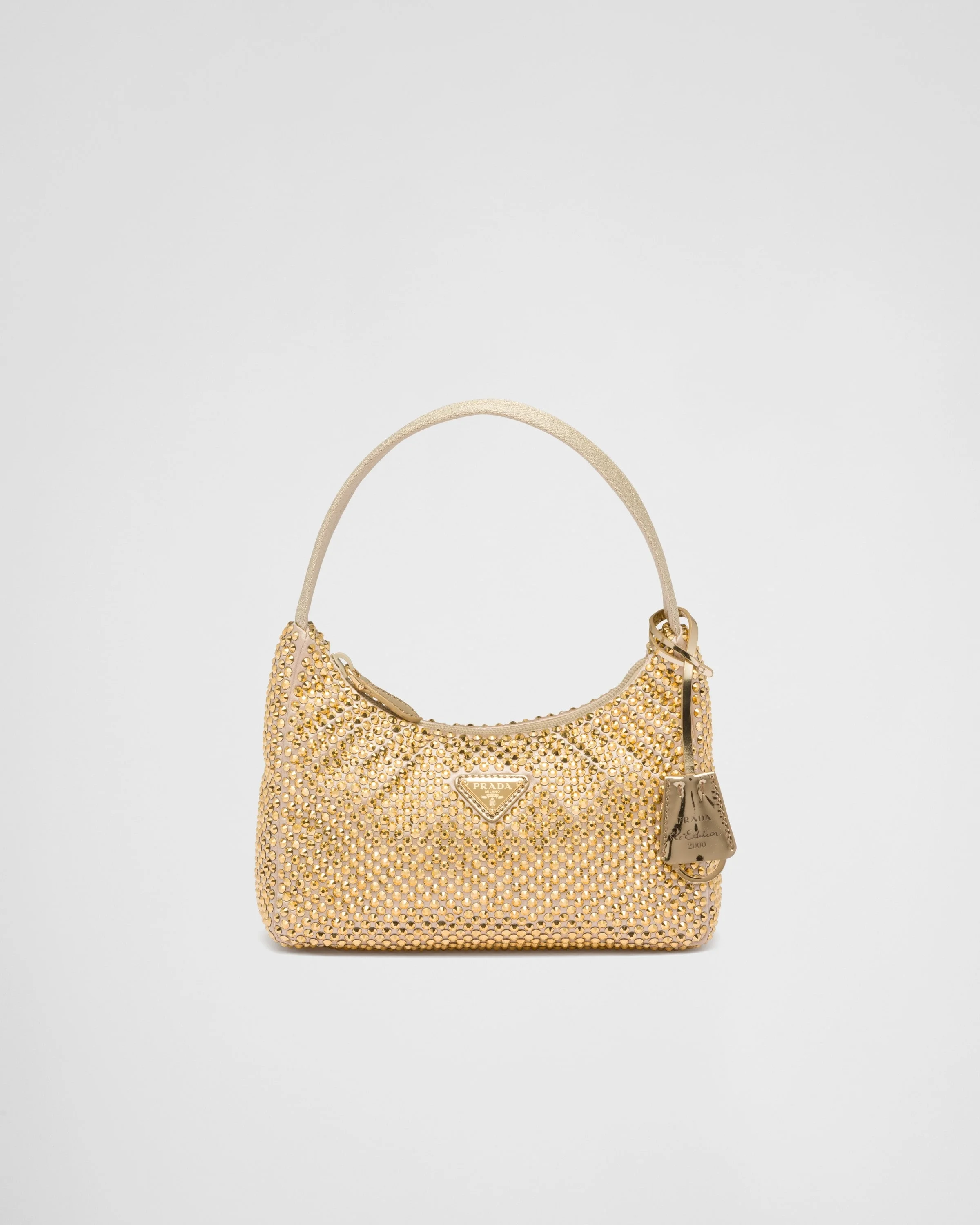 This mini hobo bag, an iconic Prada style, comes in a luxurious satin version studded with crystals and decorated with the emblematic enamel triangle logo. - Product code: 1BC515_2AWL_F0522_V_OOO - All-over synthetic crystals - Zipper closure - Enameled metal triangle logo - Silk satin lining - Imported Height: 17cm Width: 22cm Length: 6cm MATERIALS Main material: Silk viscose