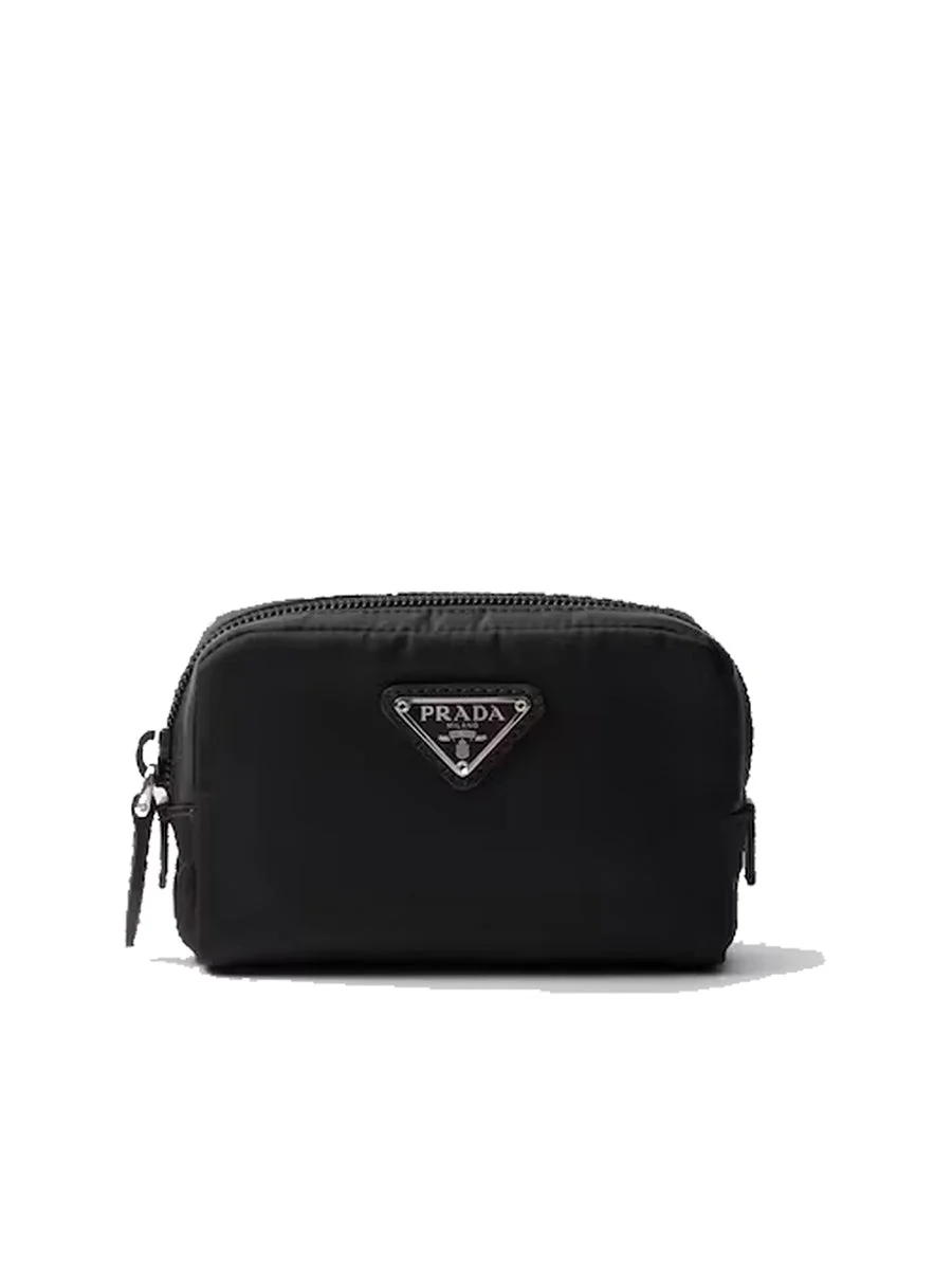 - Composition: 100% Nylon - Top zip closure - Width 5 cm - Front enamelled metal triangle logo - Height 11,5 cm - Length 17,5 cm - Made in Romania - Product code: 1NA0212BQP_F0002