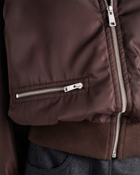 This Re-Nylon blouson jacket has a sporty silhouette embellished with refined details. The style with ribbed knit cuffs and hem is characterized by light padding that gives it soft volume. For sustainable care to preserve the product's characteristics and reduce microfiber shedding, we recommend not washing the item too often. Let the product air out after every use and have it dry cleaned at a specialized ecological dry cleaners. - Product code: 29S277_1WQ8_F0003_S_OOO - Garment lined and padded with wadding - Shirt-style collar - Long sleeves - Ribbed knit cuffs - Zipper closure - Zipper pockets - Enameled metal triangle logo - Ribbed knit hem - Imported - The model is 177 cm tall and wears a size 38 Height: 57cm MATERIALS Main material: 100% recycled polyamide
