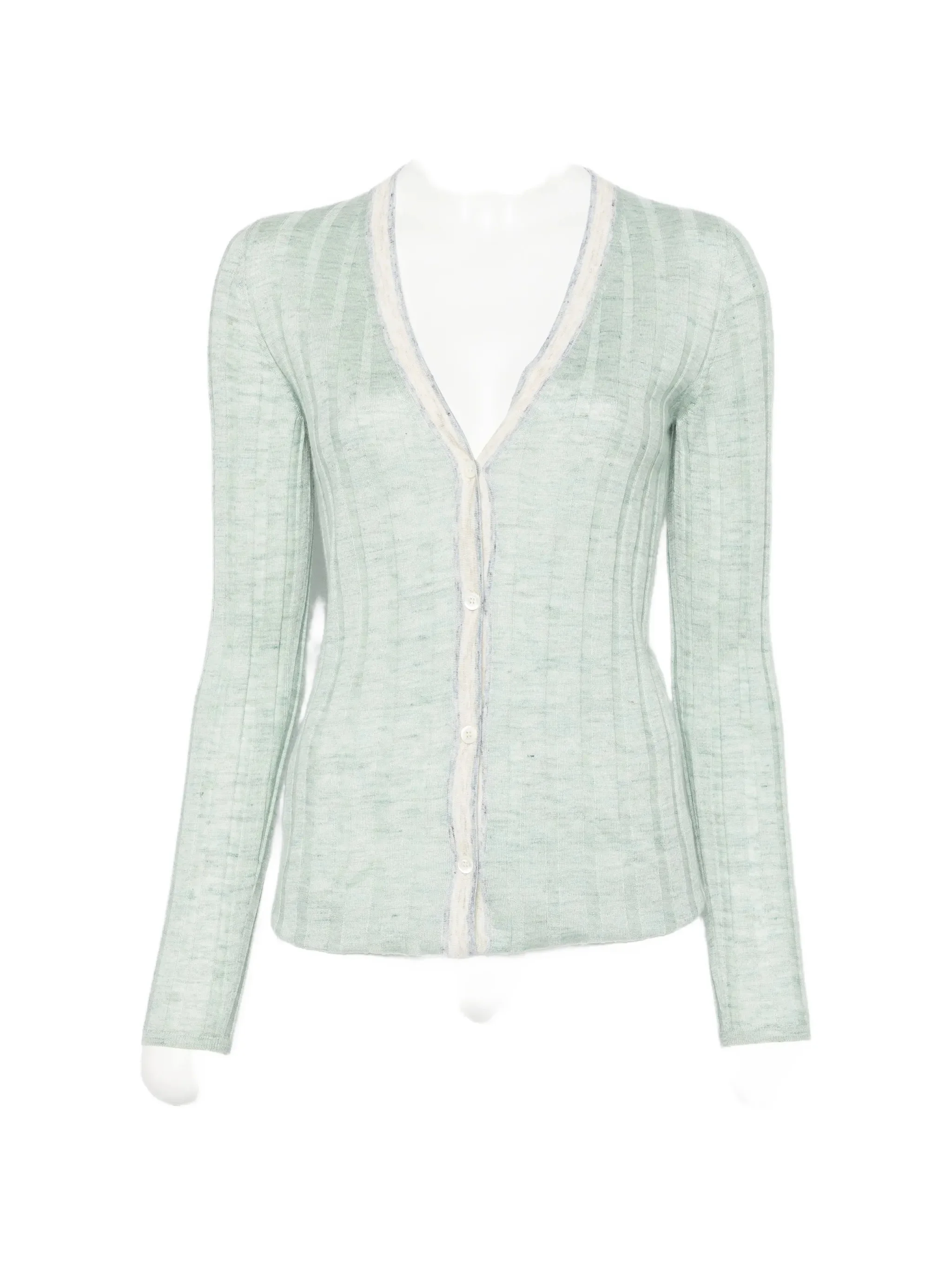 ice green ribbed knit V-neck button fastening long sleeves - Color: GREEN - Made in: Italy - Designer Style ID: P25O20 S OOO 19CE F0035 Composition and care Silk: 36.0%, Linen/flax: 22.0%, Cashmere: 42.0%